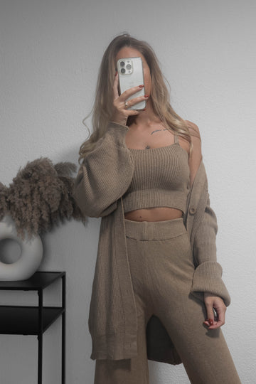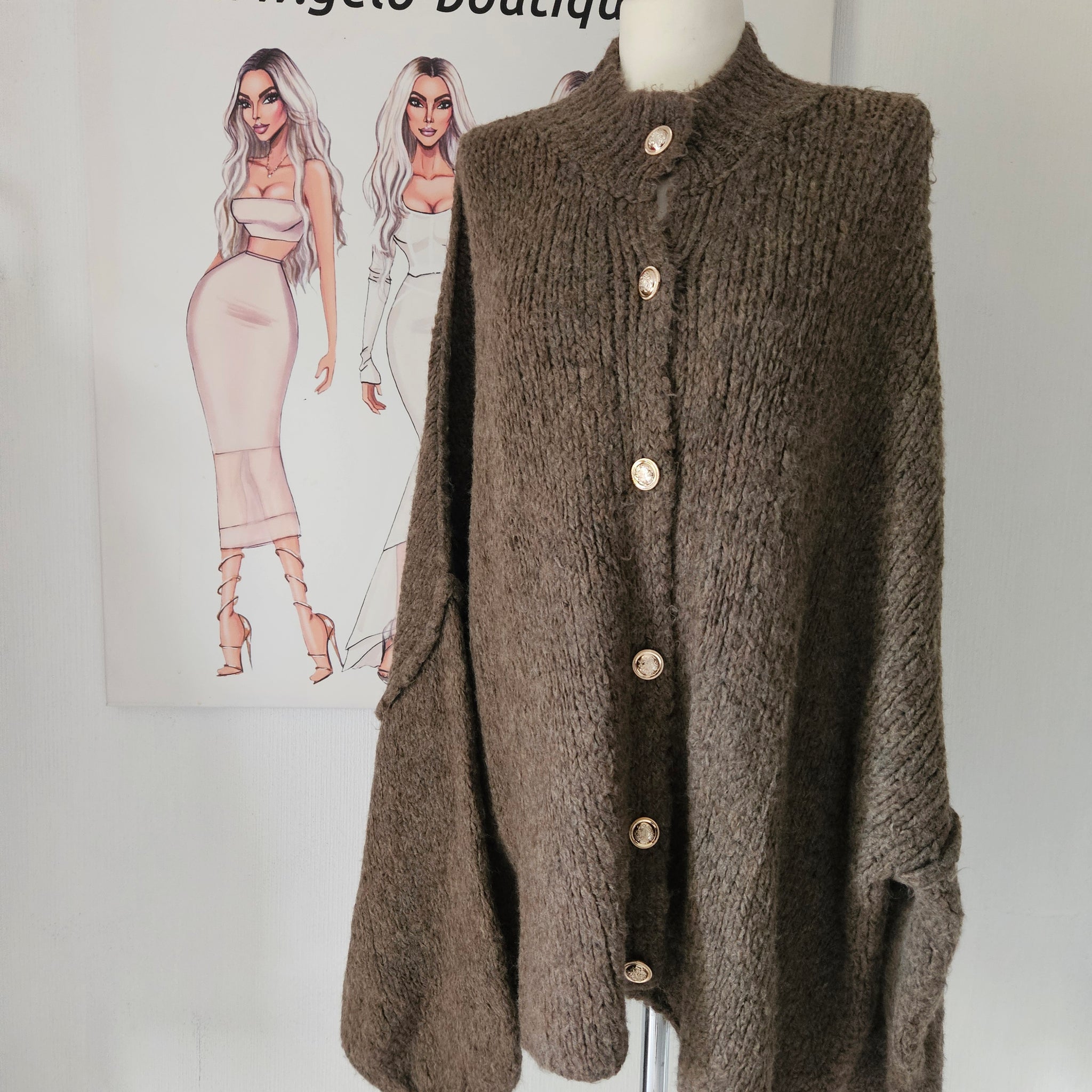Cardigan - Braun / goldene Knöpfe Dieser stilvolle Grobstrick-Cardigan vereint zeitlose Eleganz mit gemütlichem Tragekomfort....