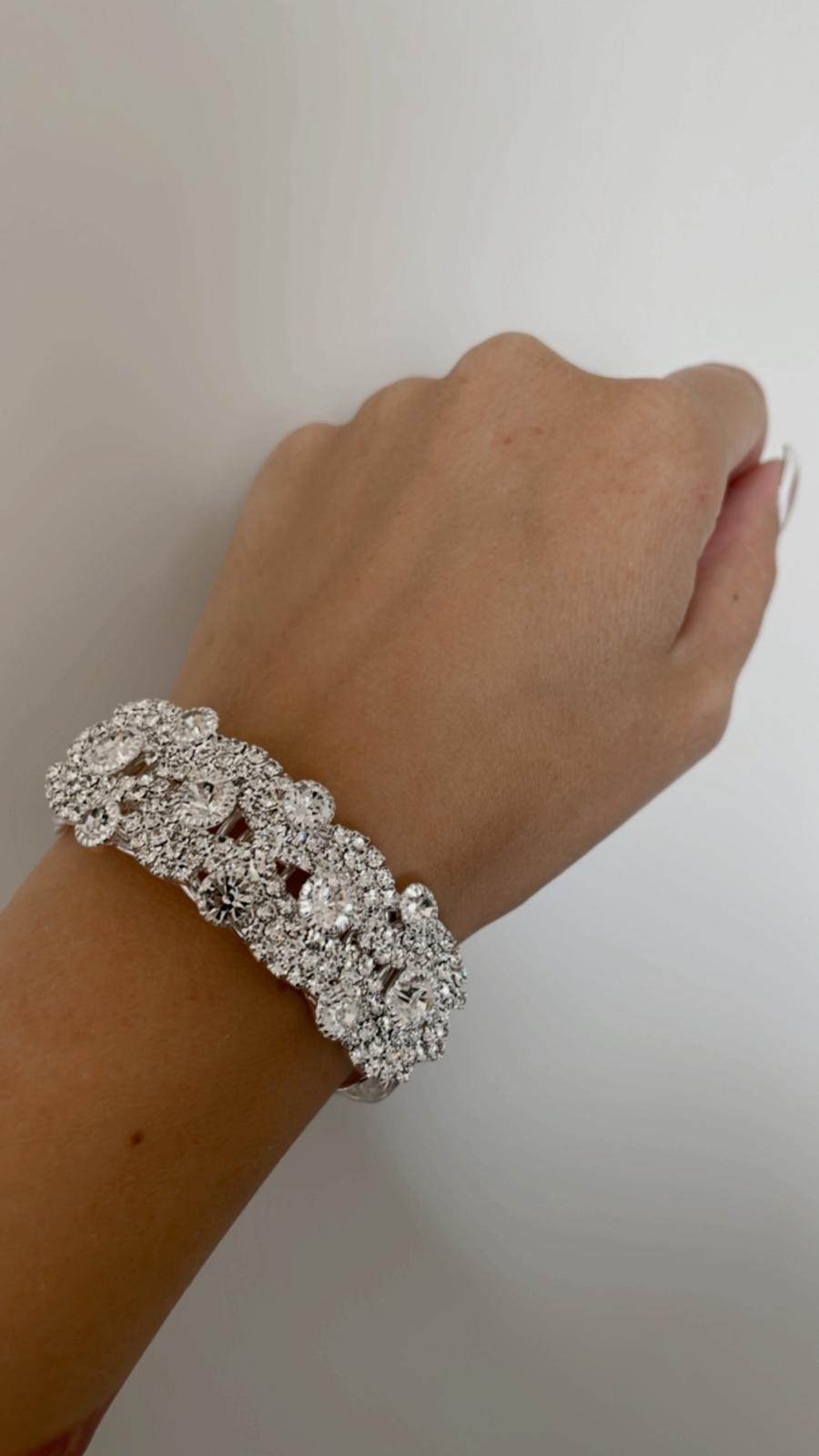 Design : trendige Armrspange/reif mit extra viel Strass Material: versilbert, hochglänzendBreite: ca. 2 cm Durchmesser:...