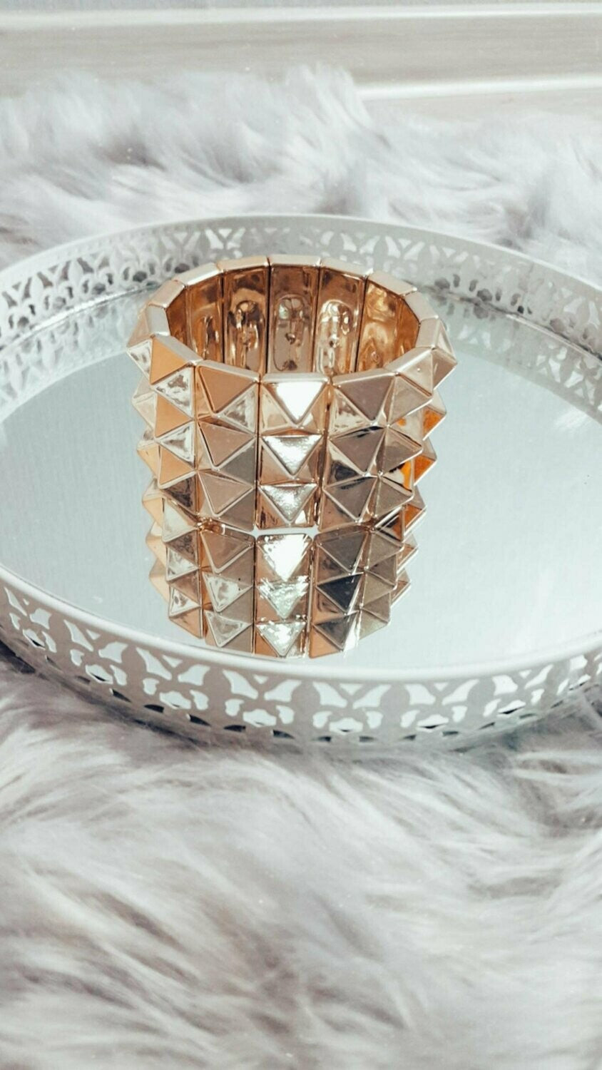 Design : trendiger Armreif im Noppen Still Material: vergoldet, hochglänzendBreite: ca. 42 cm Durchmesser: 5,7cm...