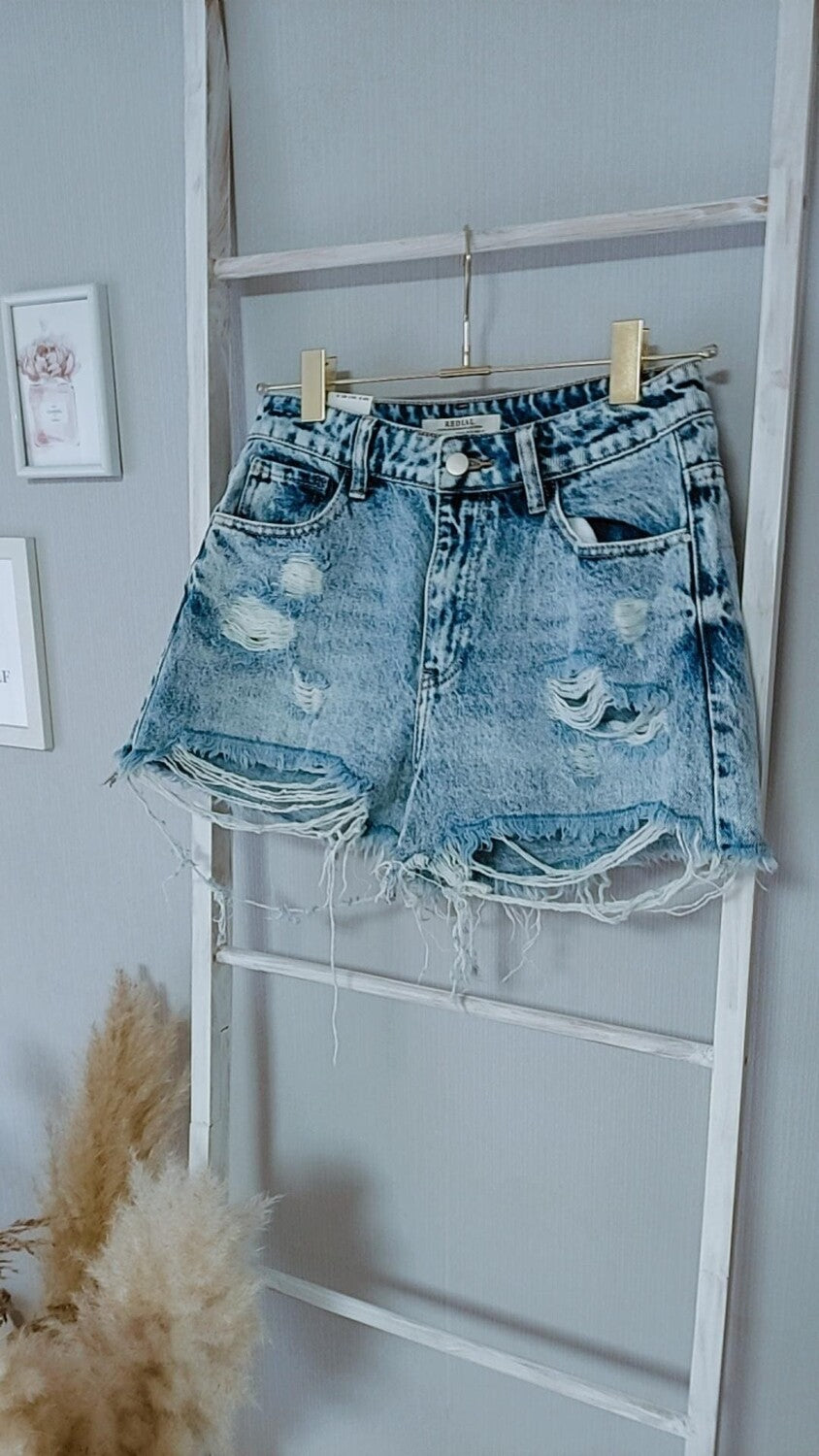 Material: 98% Cotton 2% ElasthanFarbe: Blue usedmit Fransen am Knöchel