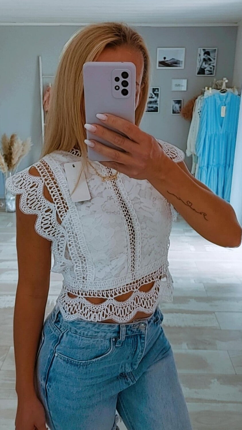 One Size (34-38) Bauchfreies Spitzen Top in WeissCups mit Einlagen Träger sind verstellbarMaterial: 100%Polyester