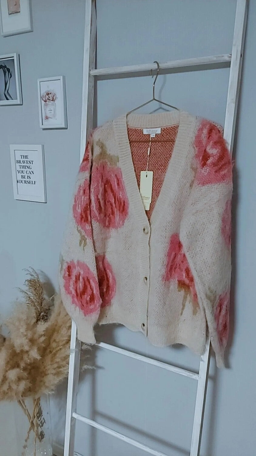 One Size(34-38)Material: polyacrymischung sehr kuschelig Farbe: beige mit rosa Rosen