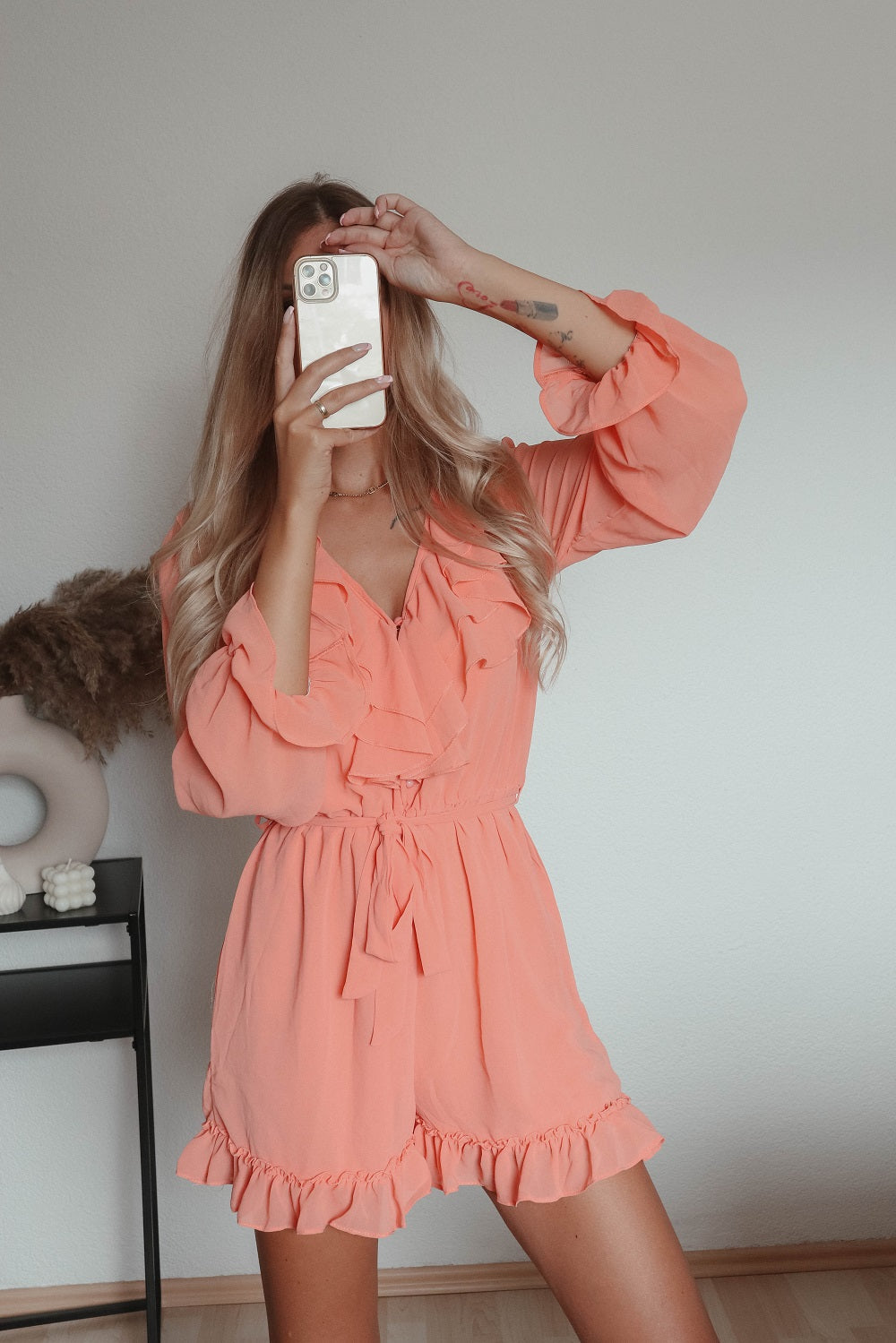 Süsser Rüschen Jumpsuitgeblühmtmit Rüschen an den Ärmel sowie am Saumam Dekoltee mit eine Druckknopz zu...