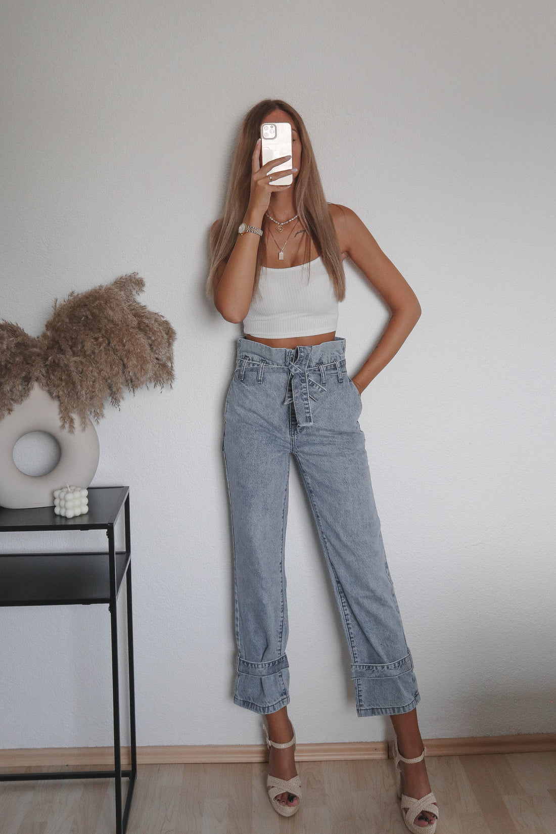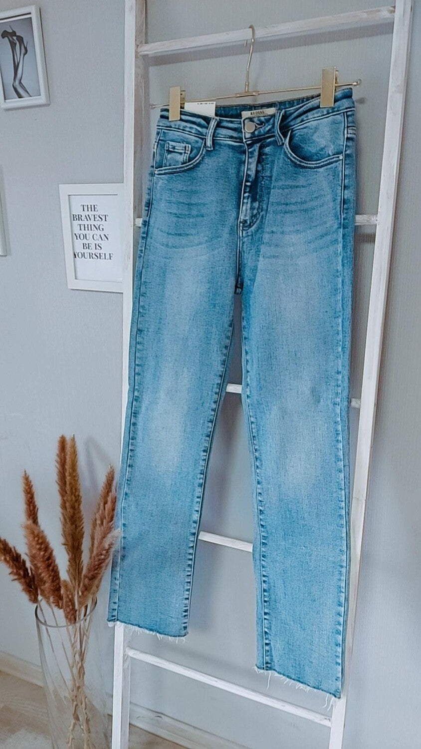 Material: 98% Cotton 2% ElasthanFarbe: Blue usedmit Fransen am Knöchel