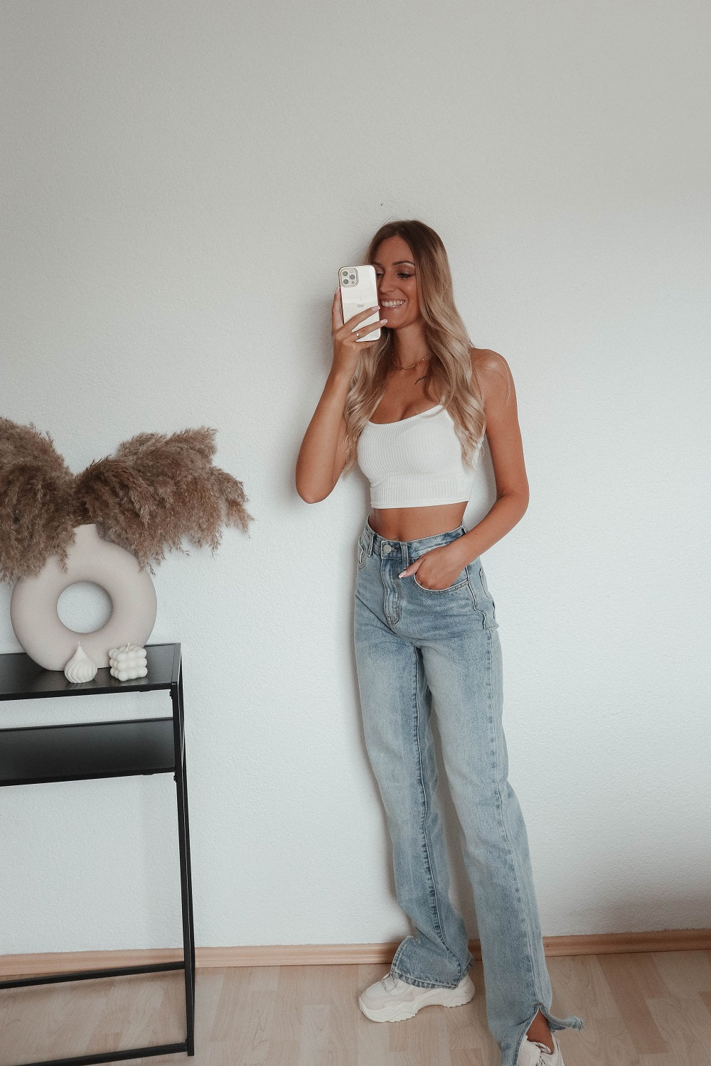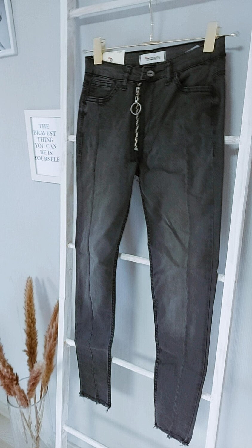 Jeans mit sichtbrem Reißverschluß vorne.Material: 98%Cotton 2%Elasthan