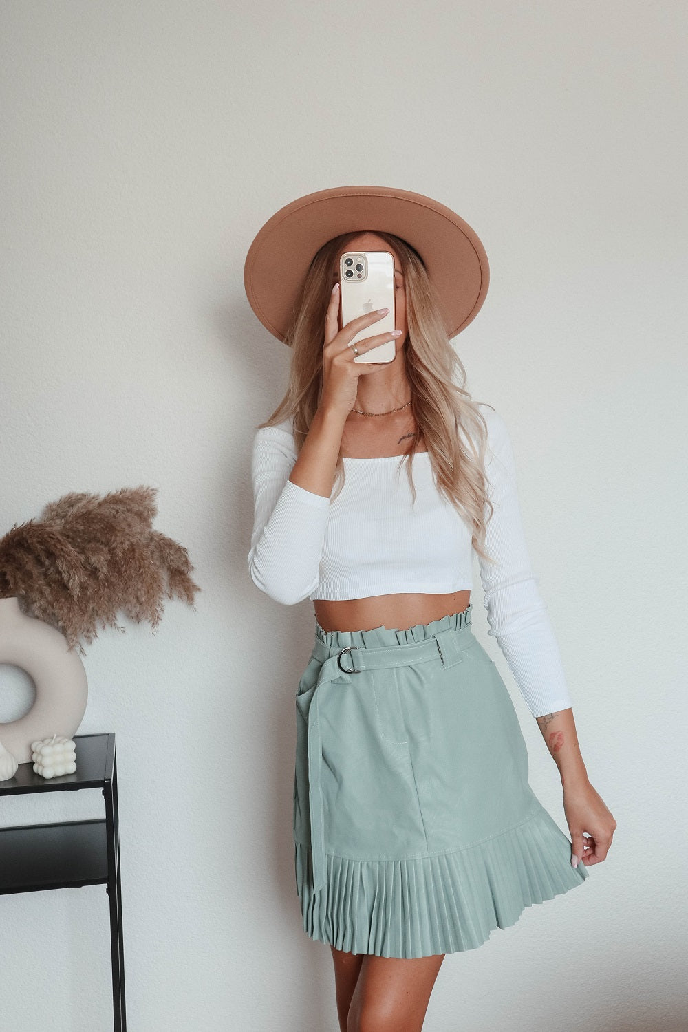 Material: KunstlederLänge: 47,5cmMit Eingrifstaschen vorneMit verstellbarem Gürtel