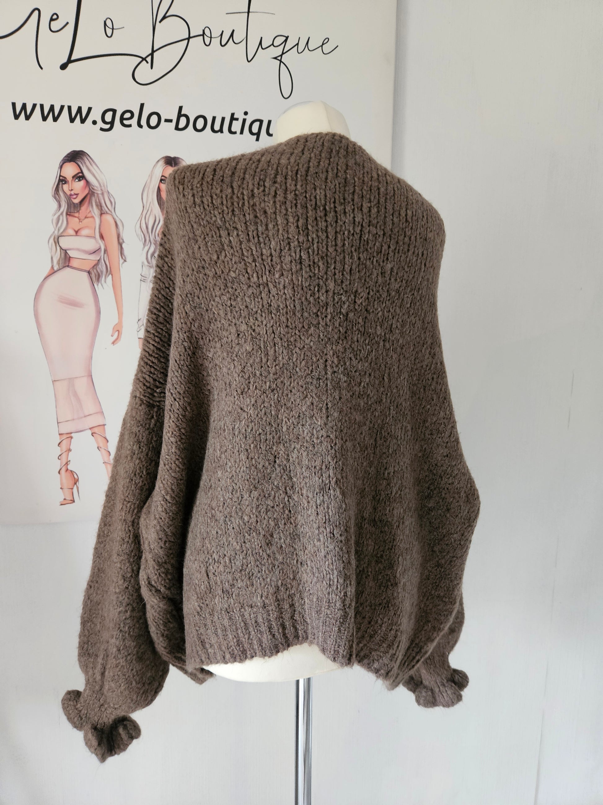 🌸 Kuschelweicher OneSize-Cardigan mit verspielten Rüschenärmeln – feminin & gemütlich